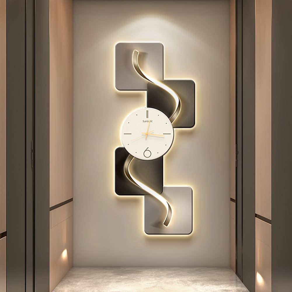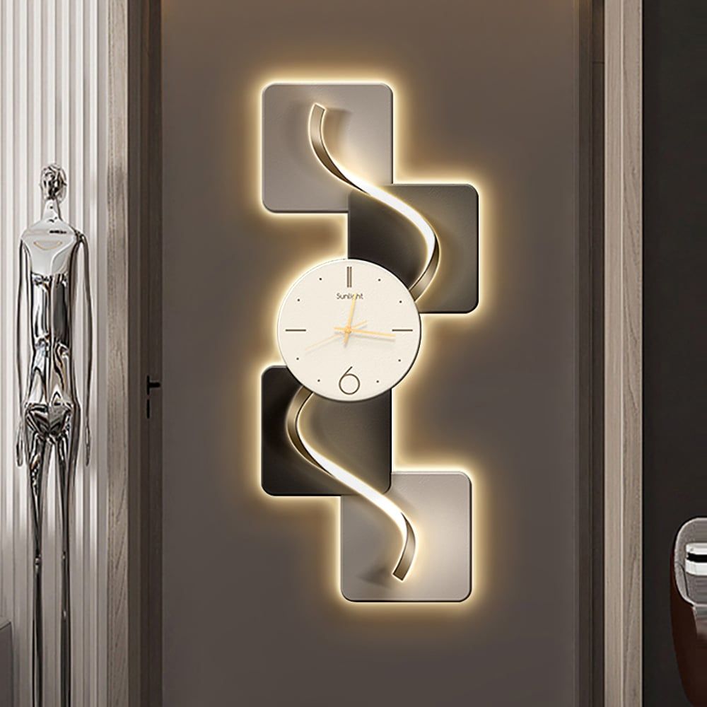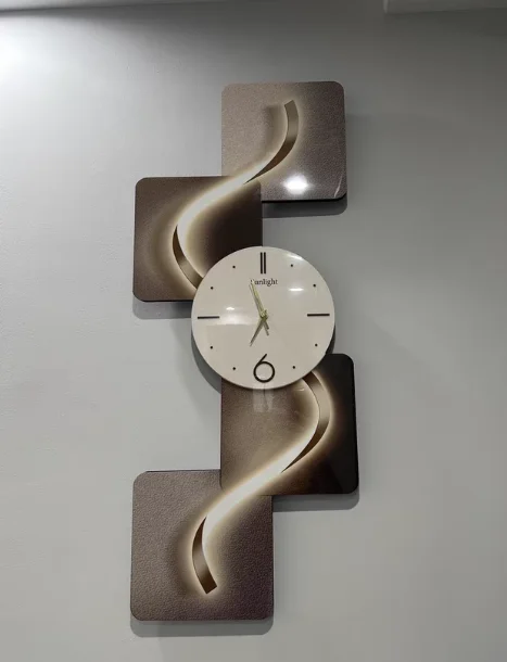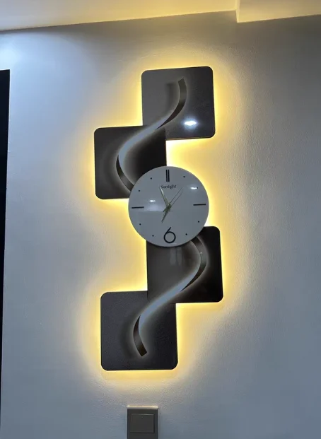 This abstract geometric wall clock merges art and functionality. Made from premium high-density MDF and acrylic, it’s built to last while elevating your decor. The LED light stripe adds a contemporary glow, and silent movement ensures a peaceful environment. Ideal for living rooms, offices, or any modern space.